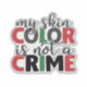 Die thematische Tasse der sozialen Gerechtigkeit zeigt mehrfarbige "Meine Hautfarbe ist kein Verbrechen" Wortkunst auf weißem Hintergrund