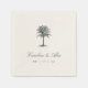 Diese wunderschönen personalisierten Hochzeitsnapkins verleihen Ihrer Cocktailstunde oder Ihrem Empfang Vintagen Charme. Das einfache und elegante Design der Hochzeit in Urlaubsort bietet eine Vintag geätzte Palmenpalmendarstellung mit Namen und Hochzeitsdatum in einer schicken Kombination aus Blockschrift und Schriftzypografie. Konzipiert zur Koordination mit der Hochzeitskollektion Havanna Palm von Redwood & Vine Design Co.