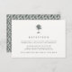 Die schicke Kapelle der Hochzeitsfeier auf der Insel besticht durch ihre elegante, grau-kohle Schrift mit einer Vintag geätzten Palmblattdarstellung. Passen Sie mit Ihrem Hochzeitsempfang, Ort und weiteren Informationen über die angegebenen Felder an. Karten werden in einem geflochtenen Muster in schwarzem Jägergrün geflochten. Entworfen, um mit unserer Hochzeitskollektion Havanna Palm für Sommer-, Strand-, tropische Insel- und Reiseziele zu koordinieren.