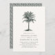 Vintage Beachstyle Probe Dinner Einladung zeigt eine geätzte Palmenbilder in schwarzem Jägergrün, die Ihre Hochzeitsdetails in Holzkohlegrau für einen schicken Küstenlook überragen. Die hellen, cremefarbenen Einladungskarten aus Elfenbein kehren zu einem geflochtenen Muster zurück. Wir empfehlen Ihnen, diesen Stil auf dem traditionellen Laid-Papier zu drucken, um eine reiche Textur zu erhalten, die das Vintage Aussehen dieser Probe-Dinner-Einladung ergänzt.