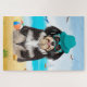 Ein niedlicher Hund am Strand ist eine Geschenkidee für jemanden, der diese Hundezucht Liebe.