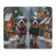 This festive design captures the joyful spirit of the holiday season, featuring an adorable dogs.Nestled in a winter wonderland, complete with a decorated Christmas tree, and beautifully wrapped presents. Snowflakes gently fall, adding a magical touch to the scene, while the vibrant colors of the holiday decorations create a warm and cheerful atmosphere.