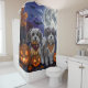 Entfesseln Sie den unheimlichen Geist mit diesem unheimlichen Halloween-Design, das eine Hundepackung unter einem dunklen, mondbeleuchteten Himmel bietet, umgeben von fliegenden Fledermäusen und glühenden Kürbissen. Ideal für diejenigen, die mit ihren wütenden Freunden eine Touch voller Furcht Liebe haben!