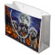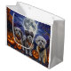 Entfesseln Sie den unheimlichen Geist mit diesem unheimlichen Halloween-Design, das eine Hundepackung unter einem dunklen, mondbeleuchteten Himmel bietet, umgeben von fliegenden Fledermäusen und glühenden Kürbissen. Ideal für diejenigen, die mit ihren wütenden Freunden eine Touch voller Furcht Liebe haben!