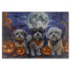 Entfesseln Sie den unheimlichen Geist mit diesem unheimlichen Halloween-Design, das eine Hundepackung unter einem dunklen, mondbeleuchteten Himmel bietet, umgeben von fliegenden Fledermäusen und glühenden Kürbissen. Ideal für diejenigen, die mit ihren wütenden Freunden eine Touch voller Furcht Liebe haben!