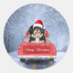 Havanese Hund im Schnee sitzend im Weihnachtswagen Runder Aufkleber
