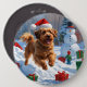Havanese läuft in Schnee mit Weihnachtshut Button