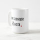 Weiße Tasse mit schwarzem Text und einem kleinen roten Herzen