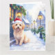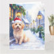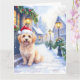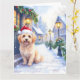 Havanese Snowy Village Walk Santa Hat Christmas Karte