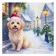 Havanese Snowy Village Walk Santa Hat Christmas Poster