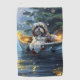 Set segelt mit dieser sehr detaillierten Abbildung in den Zauber der Urlaubssaison und zeigt einen stolzen Hund, der in einem festlich dekorierten Boot sitzt und über einen ruhigen Weihnachtssee gleitet. Die Lichter der nahen Kiefernbäume reflektieren das Wasser und warmen, festlichen Glanz, der das gemütliche Ambiente verstärkt. Die Ornamente versetzen sich von den Seiten des Bootes, während die Laternen leuchten und eine Szene schaffen, die das wahre Wesen der Weihnachtswärme und -freude einfängt. Dieses nostalgische Kunstwerk bringt eine Touch von Urlaubsmagie in jeden Raum, perfekt für diejenigen, die den Geist der Saison schätzen.