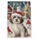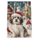 Dieses festliche Design spiegelt den fröhlichen Geist der Urlaubssaison wider und besticht durch ein hübsches Jungtier mit einer Weihnachtsmannmütze. Der Hund ist eingebettet in ein winterliches Wunderland, mit einem Schneemann, einem dekorierten Weihnachtsbaum und wunderschön verpackten Geschenken. Schneeflocken fallen sanft ab und geben der Szene eine magische Touch, während die lebhaften Farben der Feriendekorationen eine warme und fröhliche Atmosphäre schaffen.