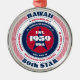 Zeigen Sie Ihren Staatsstolz in dieser Ferienzeit mit diesem einzigartigen Weihnachtsschmuck, der Hawaii, dem 50. Staat gewidmet ist. Es hat rote, weiße und blaue patriotische Farben mit einem runden Typografie-Design auf weißem Hintergrund. Der Text enthält Fakten über den Staat, wie seinen Namen, seine Hauptstadt, die Abkürzung des Staat, die Region, die Zeitzone, die geografischen Koordinaten, das Jahr seines Staates und den Namen seines Bewohners. Es ist ein großartiges Geschenk für diejenigen, die ihren Staat feiern möchten oder für diejenigen, die Gefühl nostalgisch über ihren Zuhause-Staat sind.