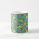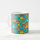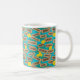 Spaß Tasse mit einem kühnen Muster hawaiianischer Beachnamen auf Schildern. Neben den gelben Hibiskus Blume und Palmen Blätter. Auf einem hellblauen Hintergrund. Ideal für Hawaiianer, für alle, die Hawaii, Hawaiianische Hochzeit am Strand, Surfer...jeder!