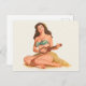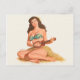 Hawaii Button-Up Girl spielt kleine Gitarre, Maler Postkarte