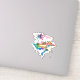 Landschaftliches Hawaii-Design mit farbenfrohen Spritzern in Regenbogenfarben mit Bergen, Palmen und Wellendekoration