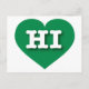 Auf dieser Postkarte befindet sich ein lebendiges grünes Herz, das die fett-, weiß-, Großbuchstaben HI, die offizielle Abkürzung für Hawaii, den Aloha-Staat, enthält. Die Rückseite der Postkarte ist leer und wartet auf Ihre handgeschriebenen Stimmungen oder Ihren personalisierten Text.