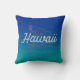 Ein bedrücktes Design, das wie ein verwitterter, gealterter Druck über einer Wellengrafik aussieht. Hawaii über einer verblassten rosa Hibiskus-Blume.
