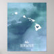 Hawaii Map Blue Watercolor Personalisierte Kunst d Poster