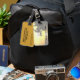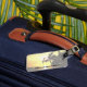 Hawaii-Themagepäck-Umbau-Nr. Dieses etikettiert Koffertasche Eigenschaft ein hawaiischer Sonnenuntergang mit Palmen entlang der Ozeanküstenlinie. Attraktive goldene Farbe auf der Rückseite koordiniert mit dem Foto.