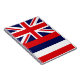 Hawaii State Flag hat acht abwechselnd waagerechte, weiße, rote und blaue Streifen, wobei die britische Gewerkschaft Flag in der oberen Ecke steht. Das Flaggenverhältnis beträgt 4:7. Das Design wurde an das Produkt angepasst. Die Hawaiianischen Inseln sind ein Archipel von acht großen Inseln, mehreren Atollen, zahlreichen kleineren Inseln und Unterwasserbergen im Nordpazifik, das sich etwa 2.500 km von der Insel Hawaii im Süden bis zum nördlichsten Kure Atoll erstreckt.