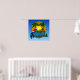 Hawaii Sonnenuntergang Malerei mit Palmen, runden Bambusrahmen und einem farbenfrohen Papagei.