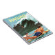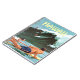 Hawaii Surfnotebook. Ein paar Surfer bereiten sich darauf vor, eine große Welle zu reiten, während andere bereits dabei sind. Vintage Poster auf Spiralheft.