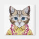 Dieses Design zeigt ein Katzenportrait in einem Sommer-Shirt und Hawaiian lei.