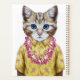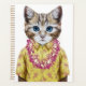 Dieses Design zeigt ein Katzenportrait in einem Sommer-Shirt und Hawaiian lei.