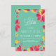 Eine lustige und farbenfrohe tropische, hawaiianische Luau Thema-Einladung mit abstrakter Blumengrenze. Ideal für Hochzeitsfeiern, Geburtstage oder andere lustige Gelegenheiten.