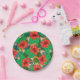Hawaiianische Luau-Teller mit Dschungelmuster-Blätter und Farnen-Muster und roten Hibiskus-Blume.