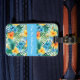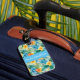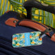 Individuelle Gepäckmarke mit einem sehr tropischen hawaiianischen Druck mit Text gezeigt. Passen Sie dieses Tag an oder kaufen Sie, wie es ist.