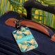 Individuelle Gepäckmarke mit einem sehr tropischen hawaiianischen Druck mit Text gezeigt. Passen Sie dieses Tag an oder kaufen Sie, wie es ist.