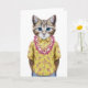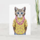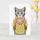 Dieses Ausrüstungsbeschreibungen ein Porträt der Katze in einem Sommer-Shirt und in hawaiischen Leu.
