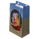 Hawaiische Sankt mit Surfbrett am Strand Kleine Geschenktüte