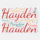 Hayden. Zeigen und tragen Sie diesen beliebten schönen weiblichen Vornamen, der als bunte Wortwolke aus waagerechten und senkrechten, kursiven Handschrift-Typografie in verschiedenen Größen und bezaubernden frischen Farben entworfen wurde. Tragen Sie Ihren positiven amerikanischen Namen oder zeigen Sie der Welt, wen Sie Liebe oder Verehrung. Merch mit diesem weichen Text Kunstwerk ist ein großartiges Geschenk, nicht nur in der Geschichte der Frauen Monat, oder Geburtstag Geschenk.