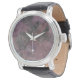 Uhr, Klassische Damenuhr mit schwarzen Lederarmband