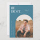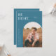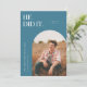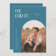 Modern graduation announcement card featuring a neon blue arch frame for your foto. The text says "HE DID IT."