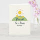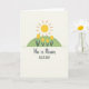 This card shows a sunny spring scene on a soft, creamy background, with a large round yellow sun filling the upper area and orange rays spreading outward. Below it sits a green half-circle hill, like a small meadow where five simple yellow flowers stand in a neat, balanced row 🌷. The shapes are smooth with a faint, grainy texture that makes the colors feel gentle and softly layered. The calm spacing and symmetry give the scene a quiet, caring mood, like something two close friends might linger over together. Centered beneath the illustration, the message reads “He is Risen ALLELUIA!” in a friendly hand-drawn look. The lettering is dark gray, standing out clearly without feeling harsh, and it sits with plenty of open space around it for an airy finish 🐰. The sun’s warm yellow circle and orange rays hover above the green mound and five yellow blooms, all arranged in simple, rounded forms.