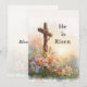 Celebrate the hope and renewal of Easter with this beautifully illustrated Christian greeting card. Featuring a wooden cross adorned with spring flowers and lilies, set against a soft sunrise sky, this watercolor design reflects the peace, faith, and promise of the resurrection.