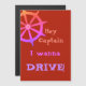 Magnetkarte der lustigen Kreuzfahrt für Ihre Kabinentür mit dem Rad eines Schiffs sagt "he Kapitän - ich will, um ZU FAHREN." (Jeder wahre Matrose weiß, dass der Kapitän nicht das Boot fährt - er STEUERT das SCHIFF)