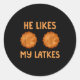 He Likes My Latkes Hanukkah Couple Matching Jewish Runder Aufkleber