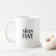 Hey Montag geht mir die Tasse leicht. Schwarzweißtypografie. Sprichwort wird auf jeder Seite angezeigt.