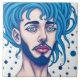 Bearded alien with blue hair, science fiction, grunge, strong face, intricate art. Modern artistic design for holiday gifts.