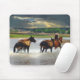 Bild von Trapper auf Pferderückseite mit seinen packmules, die über einen Fluss gehen