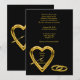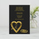 Heart and Rings in Gold auf Black Modern Wedding Einladung