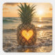 Heart Carved Into a Pineapple On a Beach Quadratischer Aufkleber