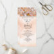 Hochzeitsprogramm auf einer Rackkarte. Schönes Design mit einem orangefarbenen Schmetterling, der die weißen, herzförmigen Perlenperlen berührt. Ein weiterer Schmetterling fügt sich in den Bouquet heller Rosen in Orange und Rosa ein. Orange ist die Designfarbe auf dem Pergamentpapier-Bild. Konvertieren Sie dies für jeden Anlass. Fügen Sie ein Foto hinzu und/oder ändern Sie den Text. Personalisieren Sie diese Vorlage mit Ihren Informationen.