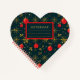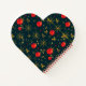 Unique Heart-Shaped Notebook! Features a traditional holiday pattern of red ornaments and gold snowflakes on a rich, dark background. Perfect seasonal stationery and a joyful Christmas gift.