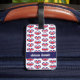 NewParkLane - Fun Personalisiert Luggage Tag, mit einem Muster von niedlichen herzenförmigen Fahnen aus dem Vereinigten Königreich; der Union Jack, mit einem blauen Banner für Ihren Namen in lustiger Typografie. Einfache Anpassung in Zazzle mit eigenem Text für ein personalisiertes Design. Alle Textstile, Farben, Größen können an Ihre Bedürfnisse angepasst werden. Auch mit einem roten Banner erhältlich. Karo diese Auflistung für passende Elemente aus.